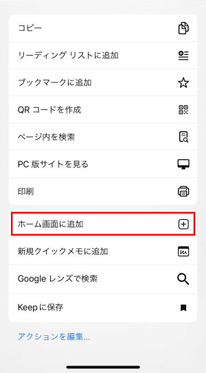 このページで共有アイコンから「ホーム画面に追加」をタップ